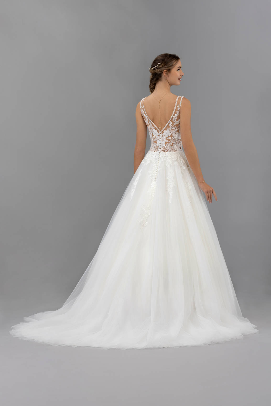 Son dos en « v » est en totale transparence.