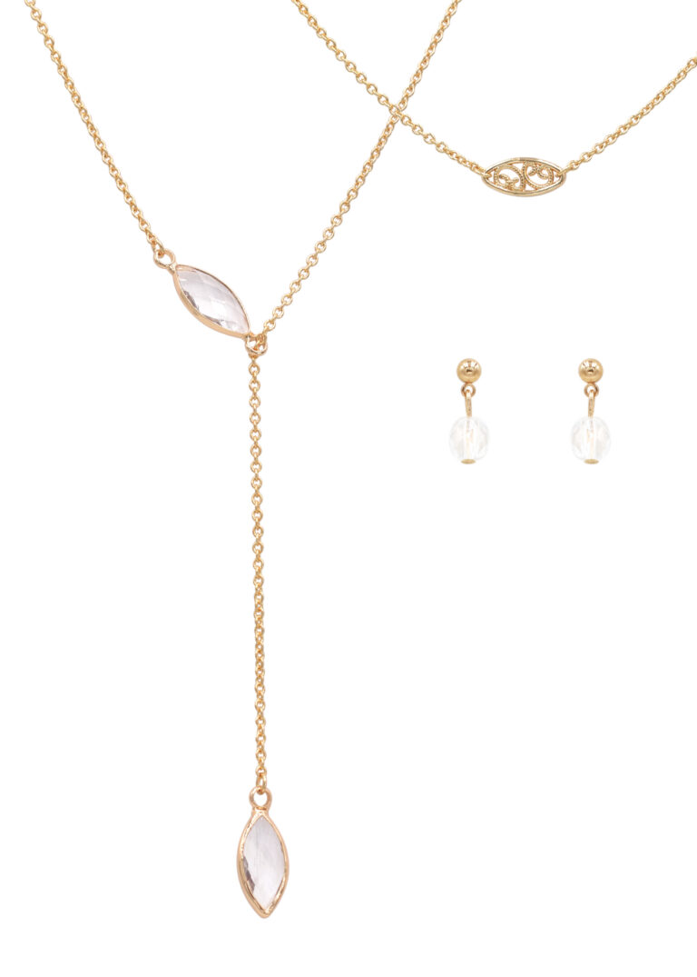 Parure de mariée : collier de dos coulissant, pendentif cristal facetté