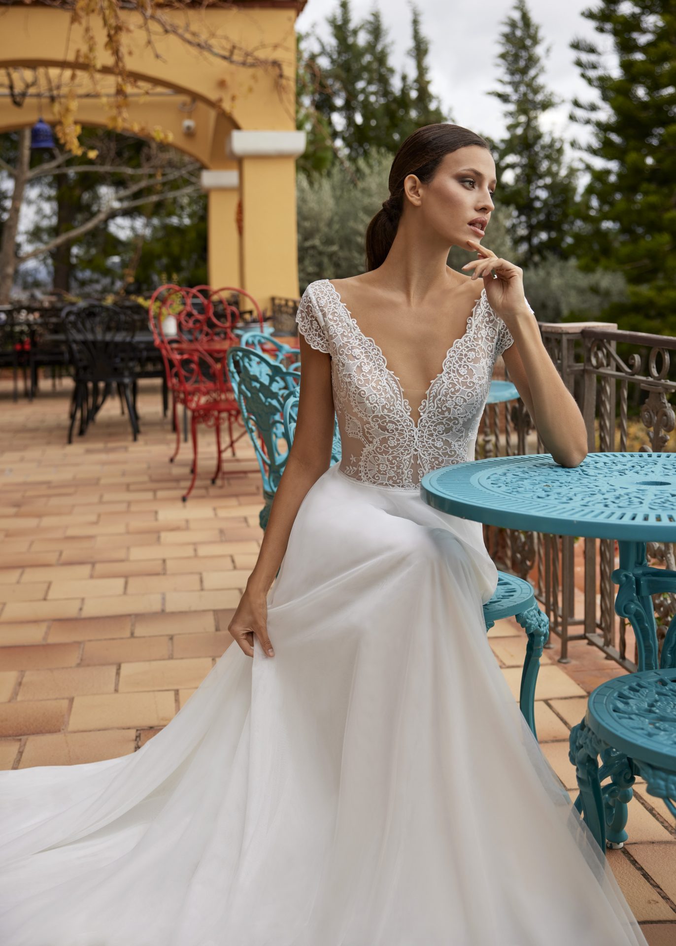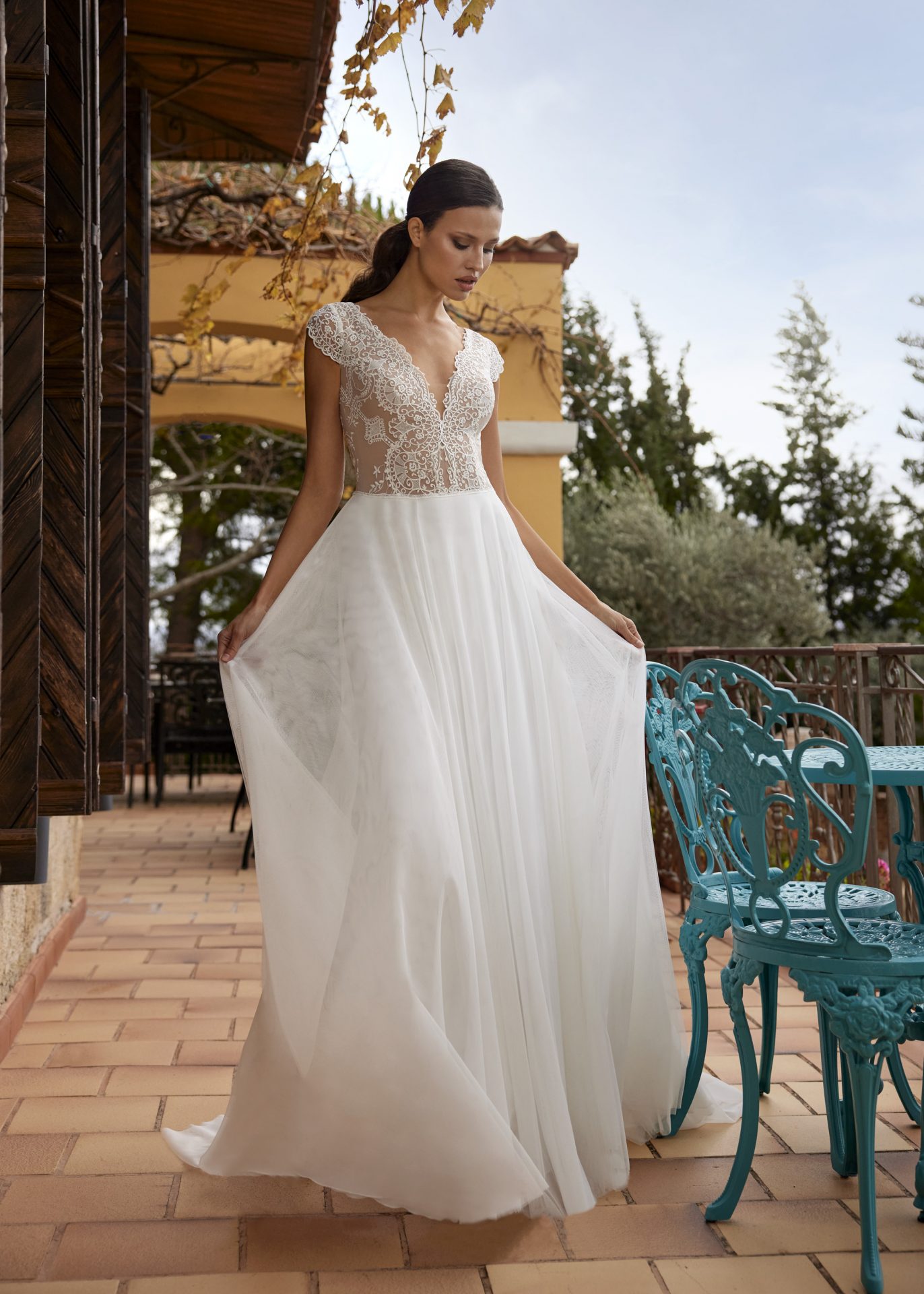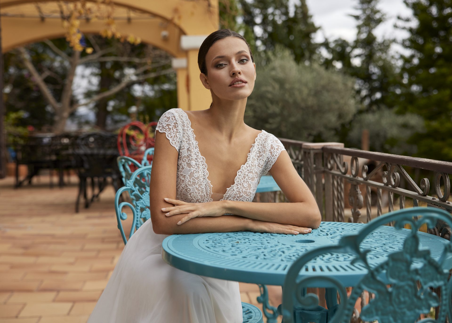 Sur cette photo, vous la voyez en ivoire/nude. En boutique, nous l’avons en essayage en toute ivoire.