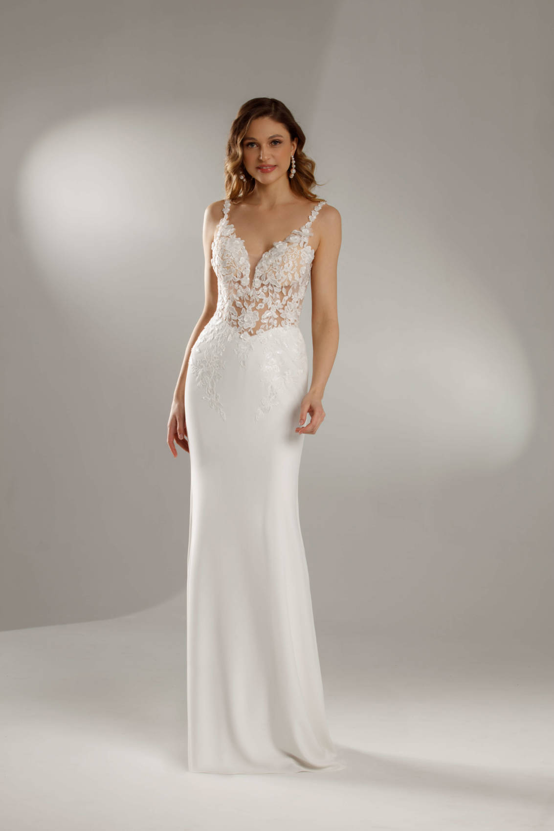 Namur, c’est la robe sirène à essayer absolument! La jupe se compose de crêpe.
