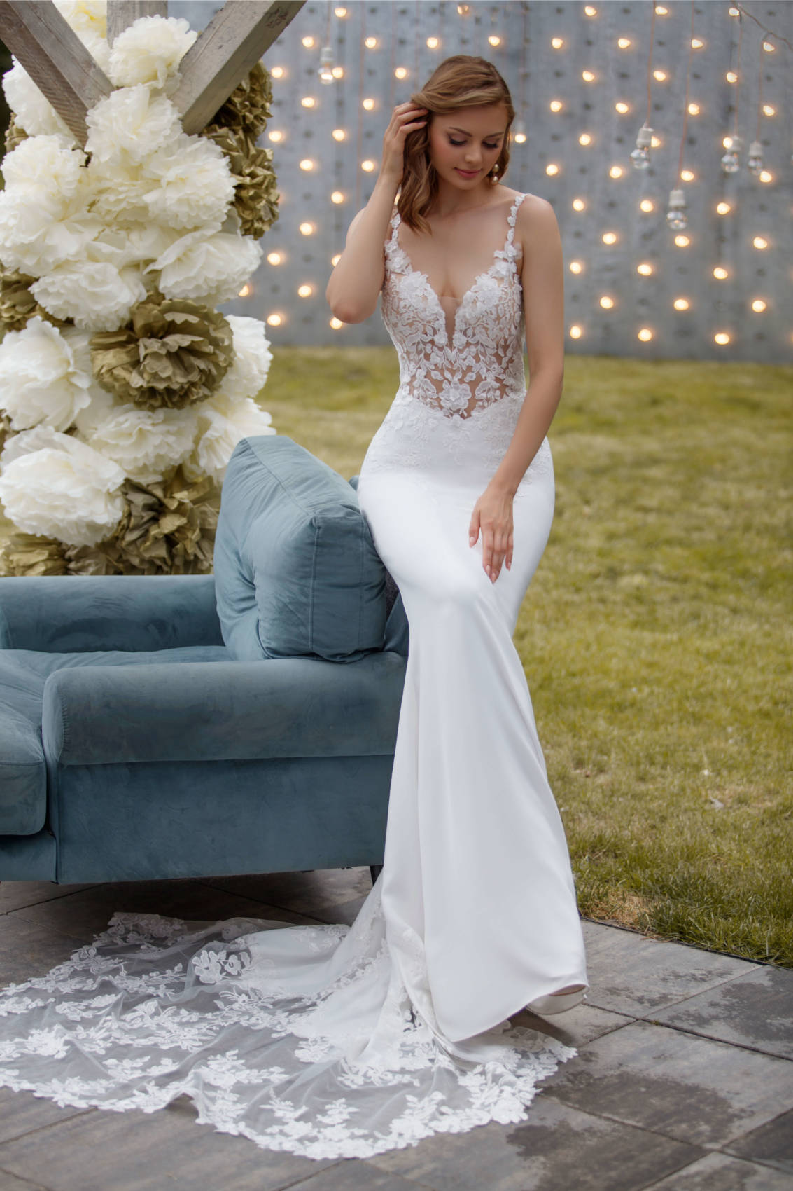 La traîne se termine en dentelle, c’est qui est vraiment un plus!