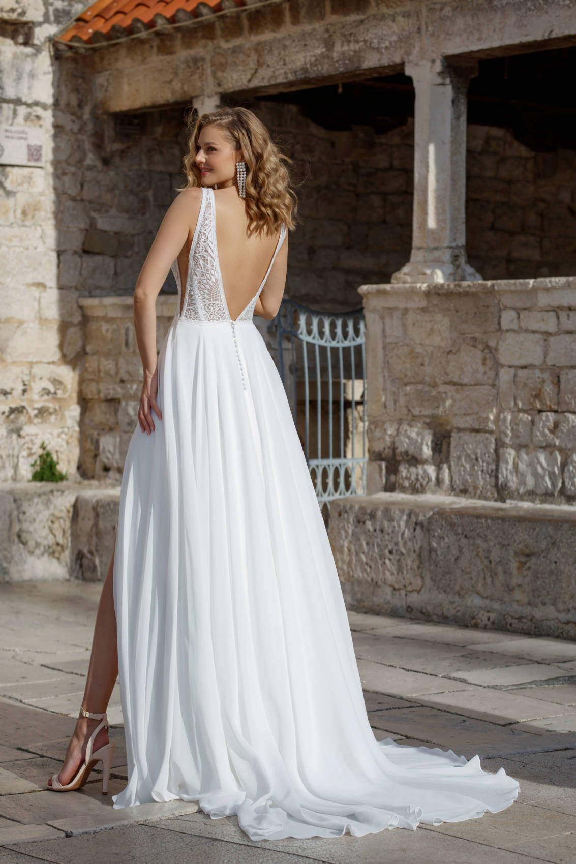 Le bohème se fait glamour avec cette magnifique robe en dentelle et mousseline.