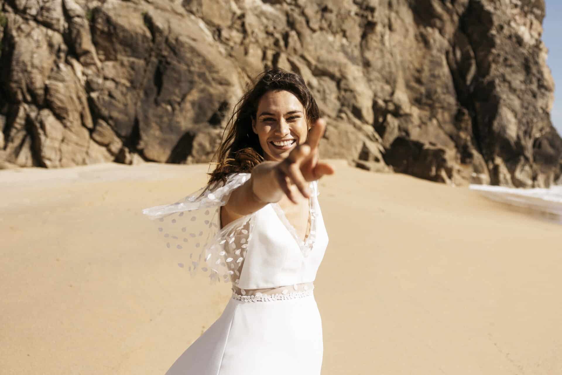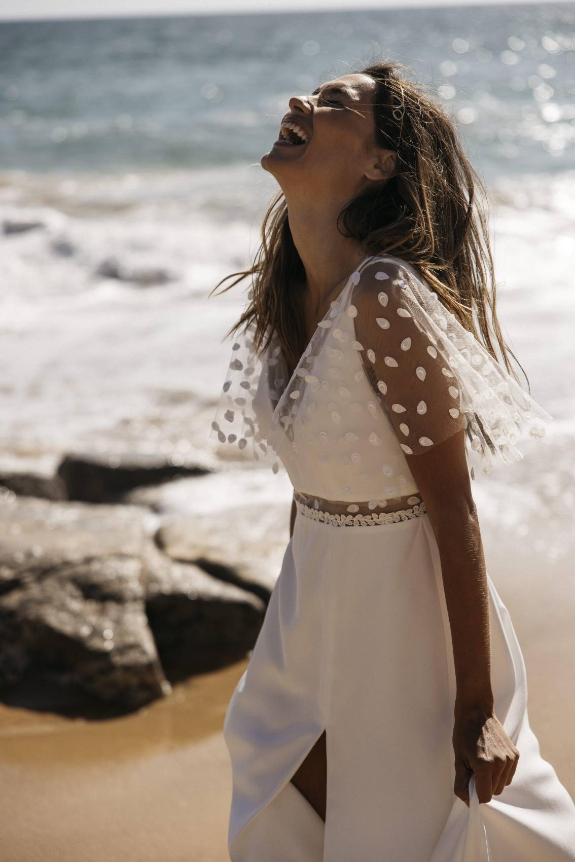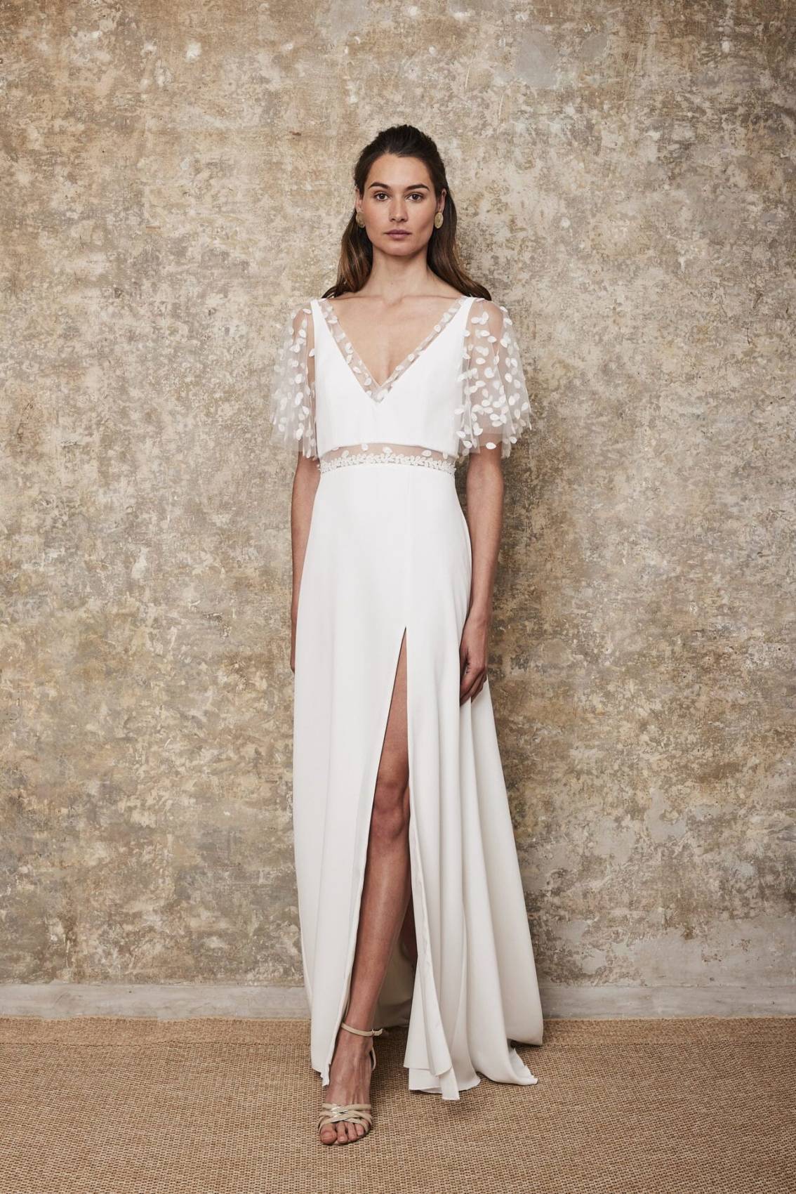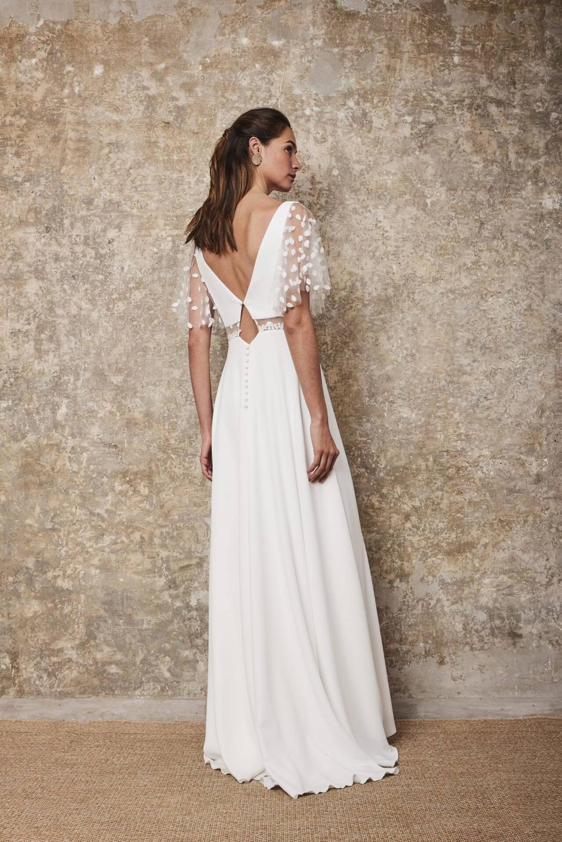 On aime ses petites « manches » volantes et délicates. Sa coupe est juste parfaite! Toute la robe est composée de crêpe, ce qui lui apporte un joli tombé.