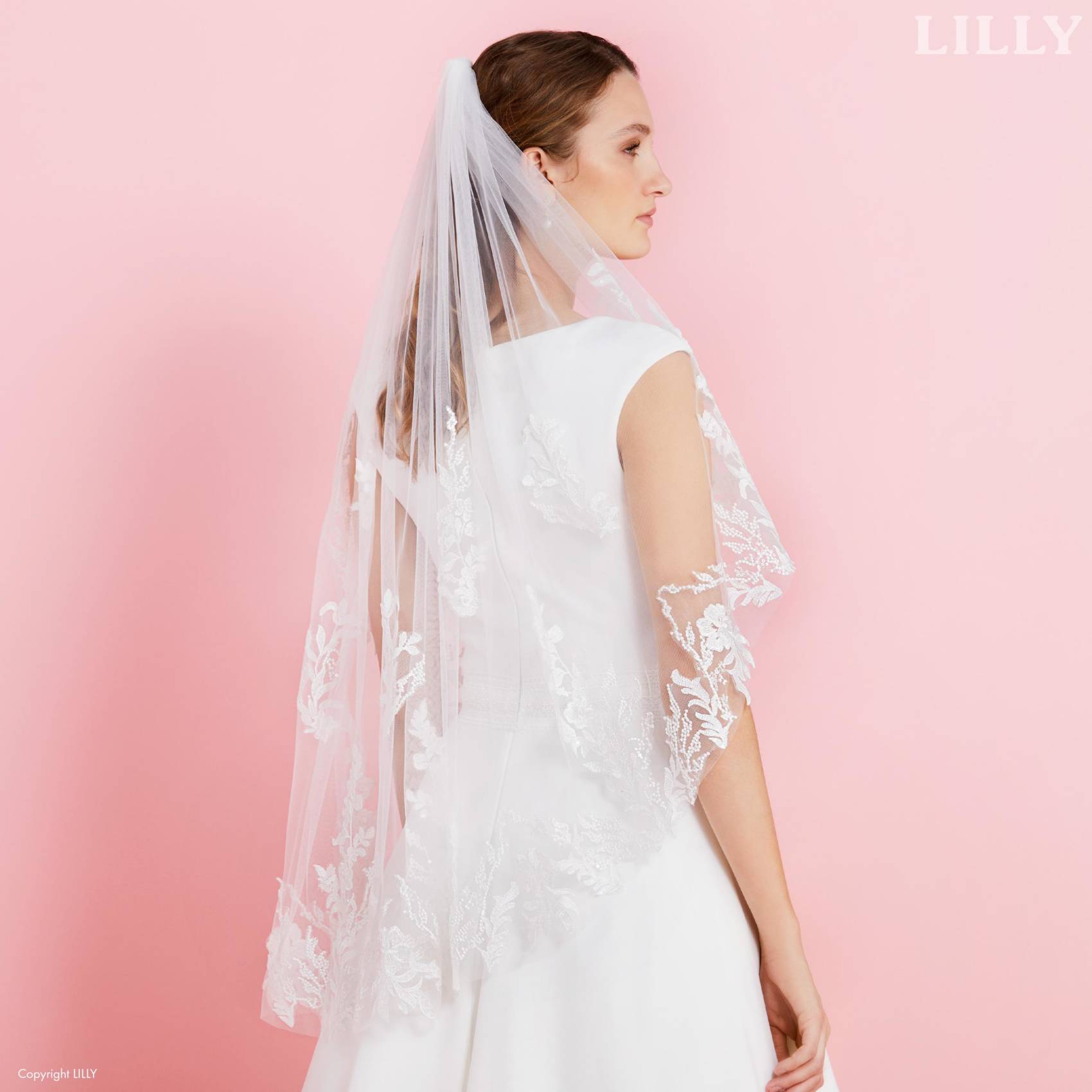 ce voile est une pépite. Il est entièrement brodée d’une dentelle fine et légèrement brillante. Il existe également en 2m