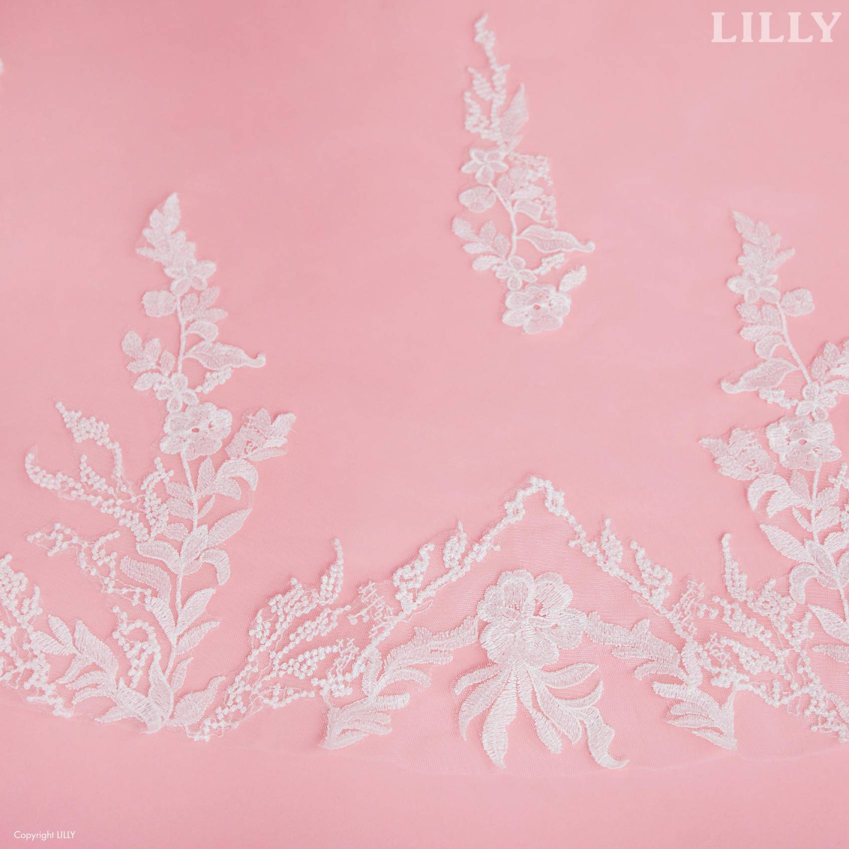 ce voile est une pépite. Il est entièrement brodée d’une dentelle fine et légèrement brillante. Il existe également en 1m