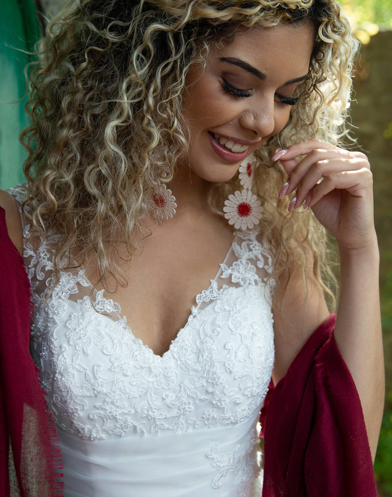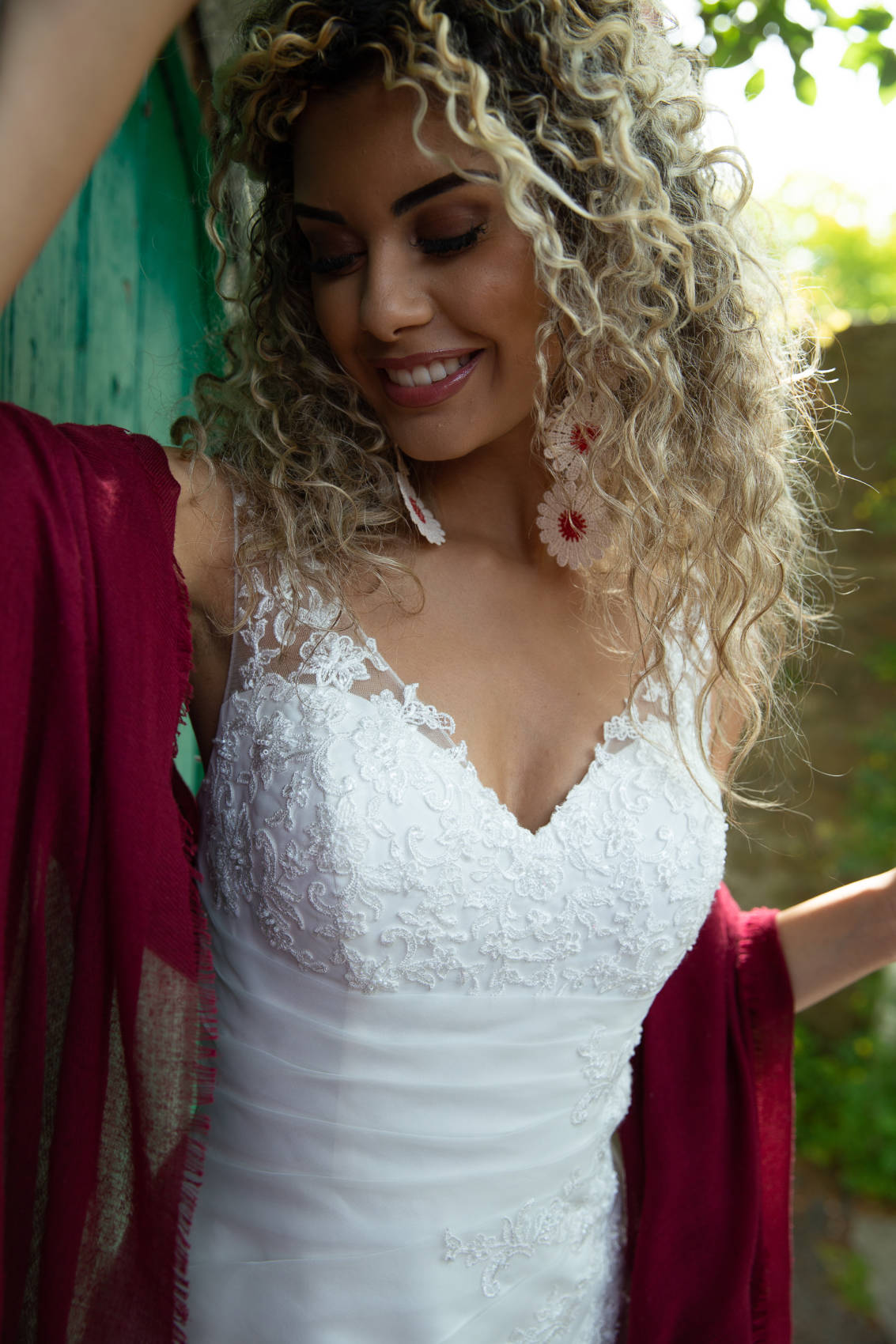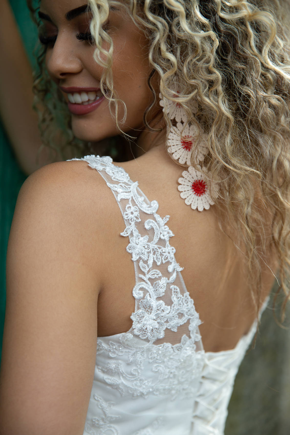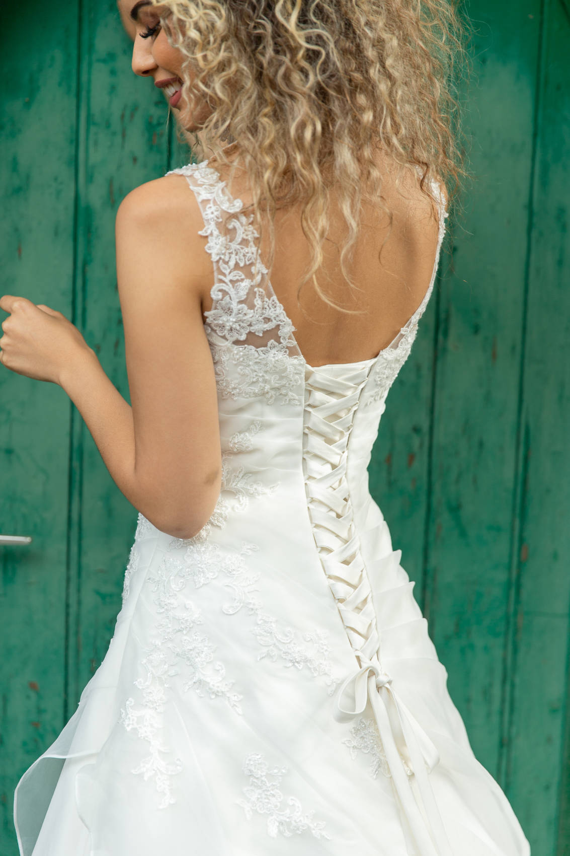 Elle se compose d’une jupe en organza sur une base en satin. Le haut est en dentelle brillante.