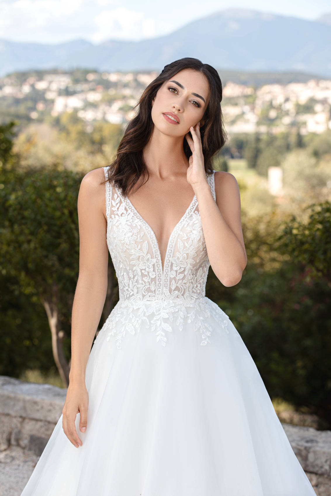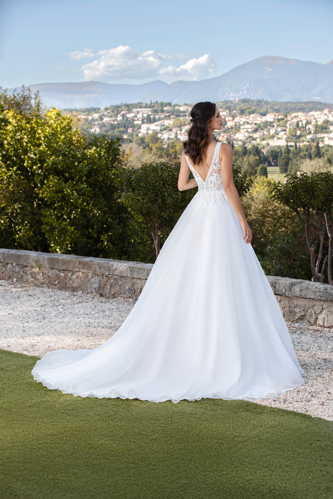 Super chic cette robe de la collection Lov’Ely, elle propose un haut en dentelle basé sur un tulle nude ainsi qu’un dos en « v ».