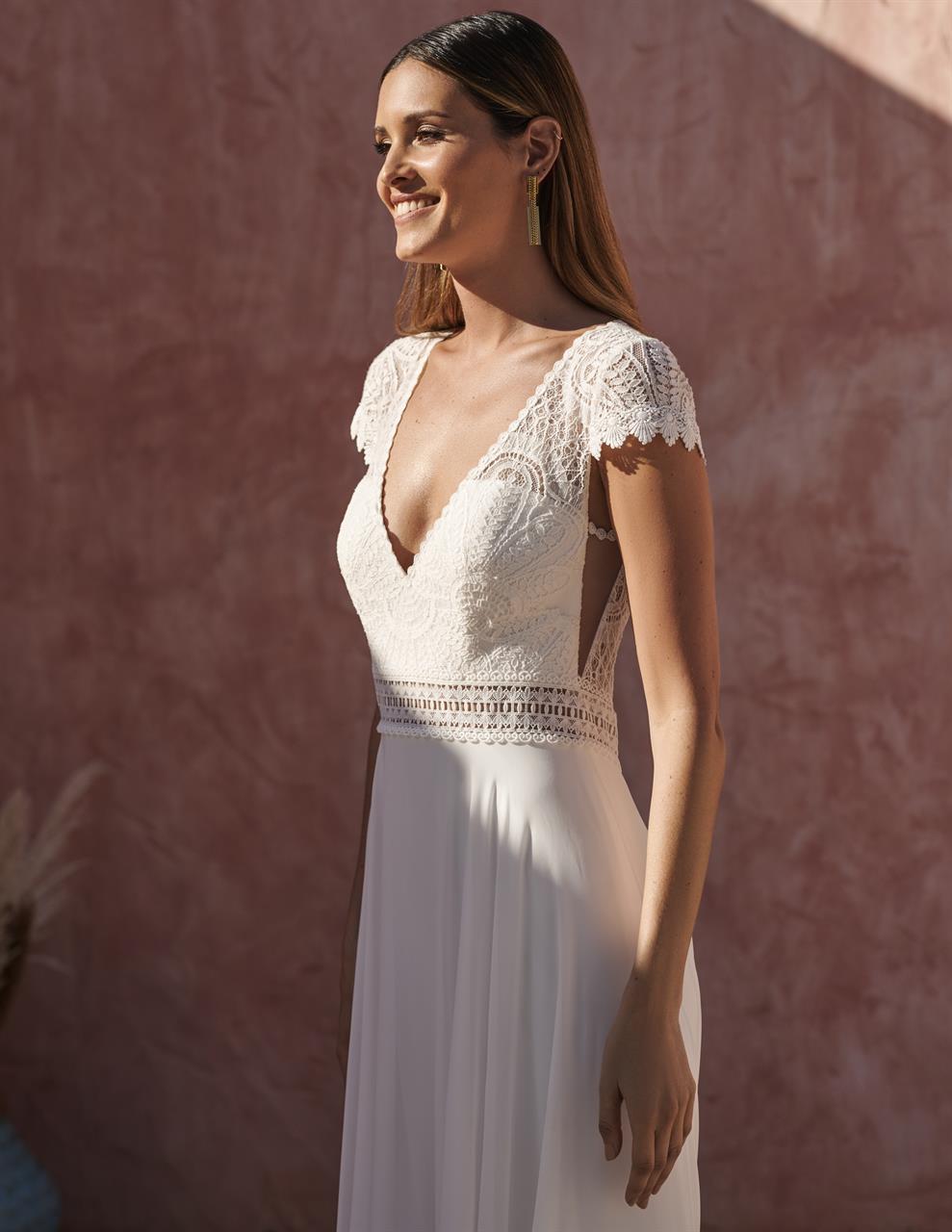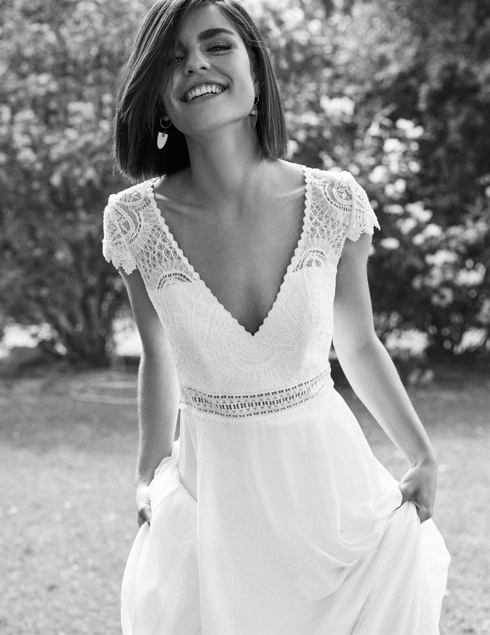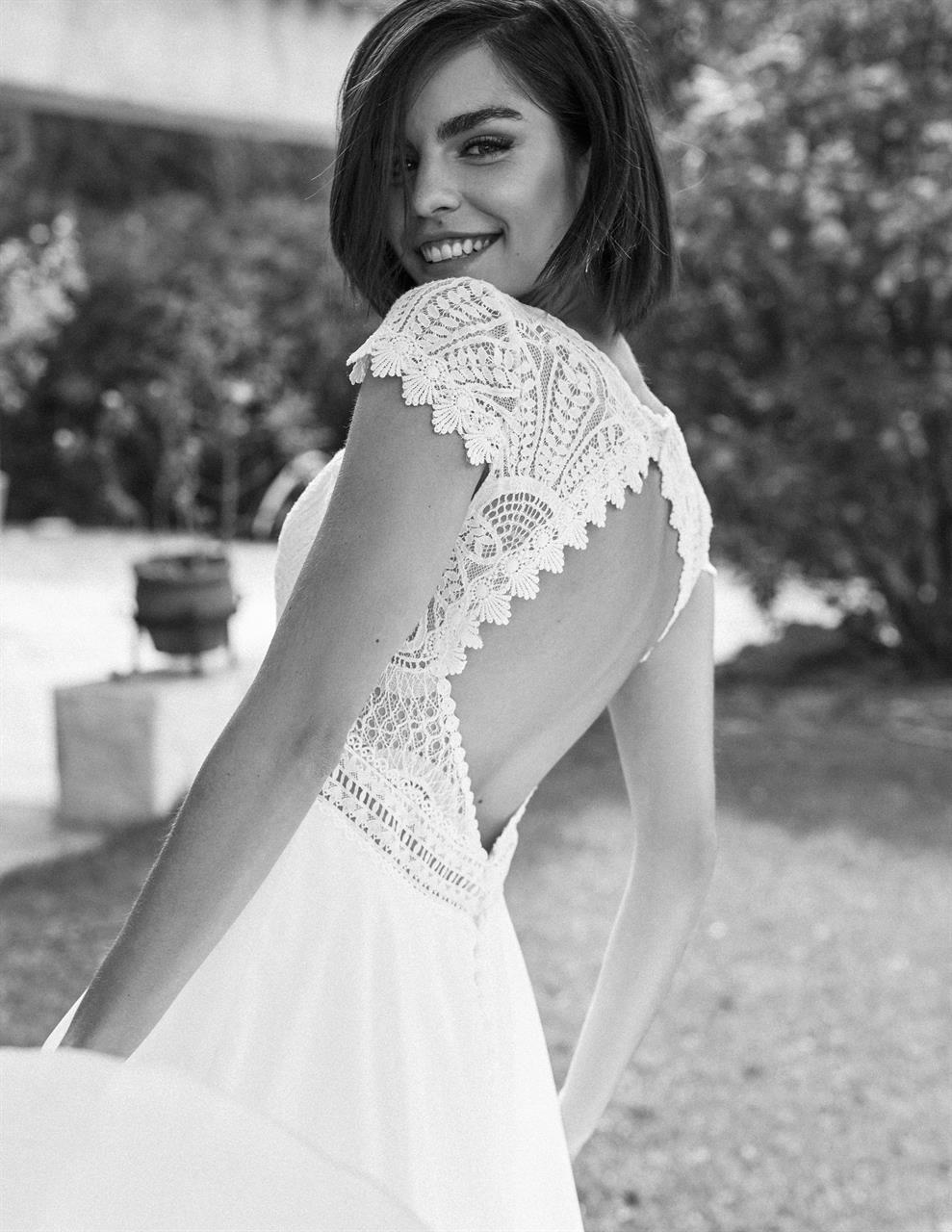 Vous trouvez que le décolleté dans le dos est trop profond? Une version avec le dos fermé est disponible à l’essayage.