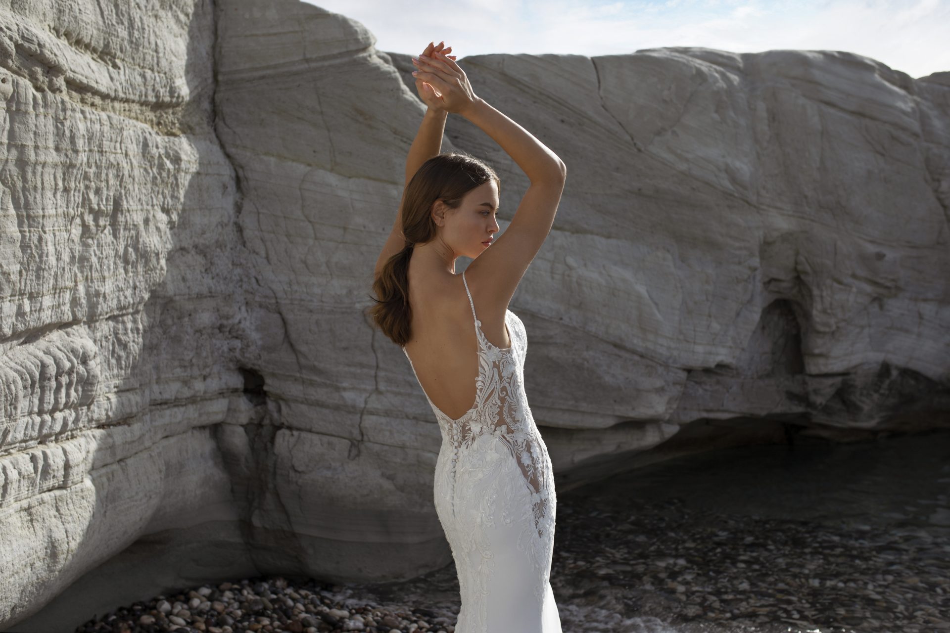 Cette robe ajustée se porte sans jupon et sans soutien-gorge.