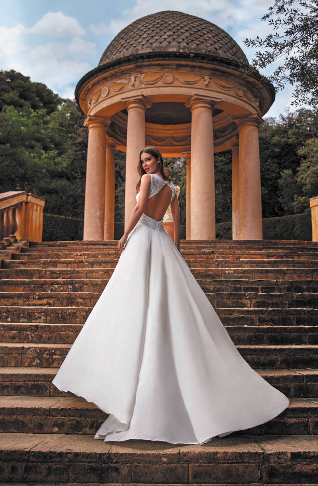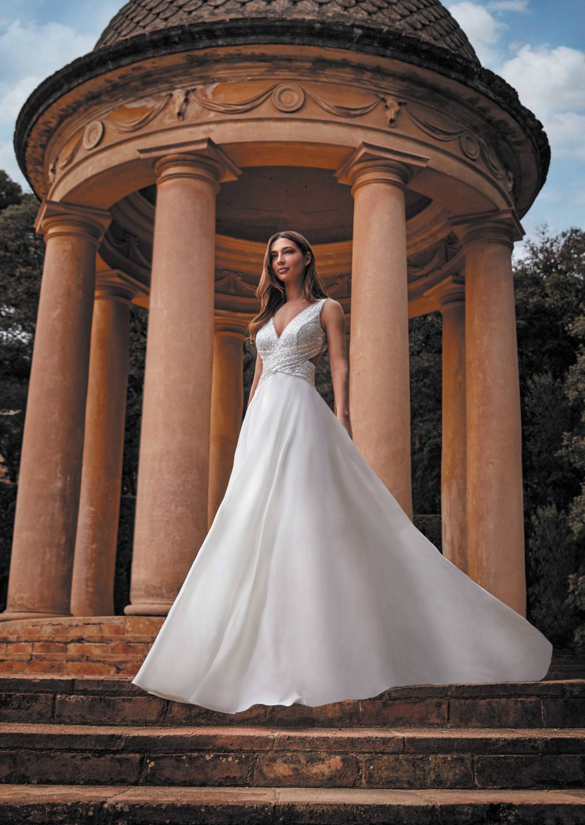 Le haut est entièrement recouvert de sequins. Le bas est satin fluide brillant.