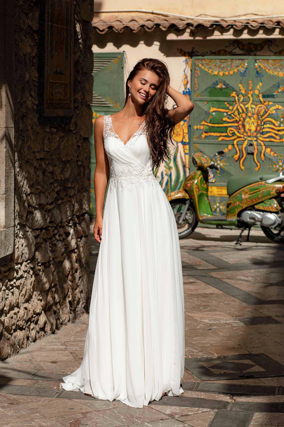 Magnifique robe en mousseline avec une touche de dentelle.