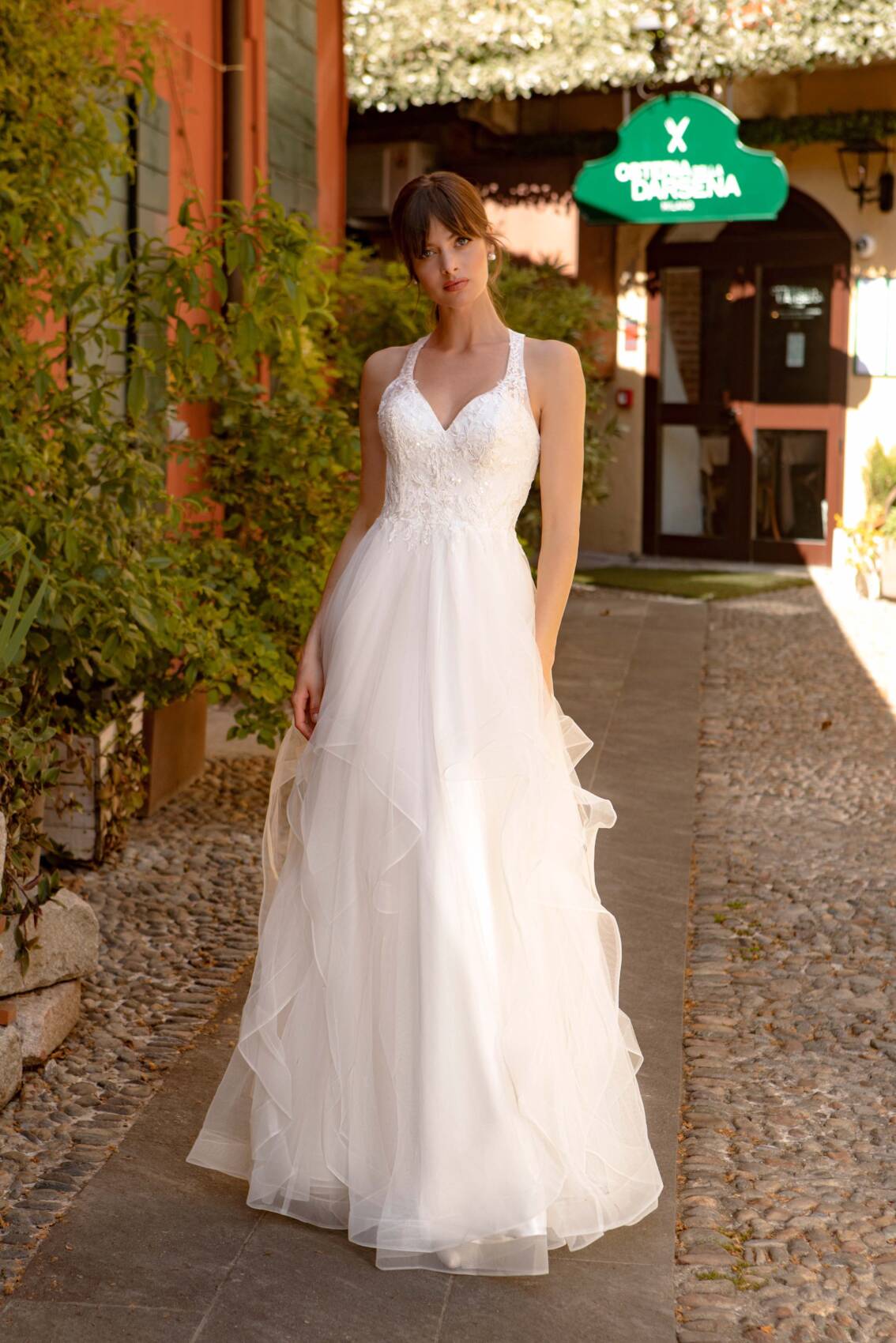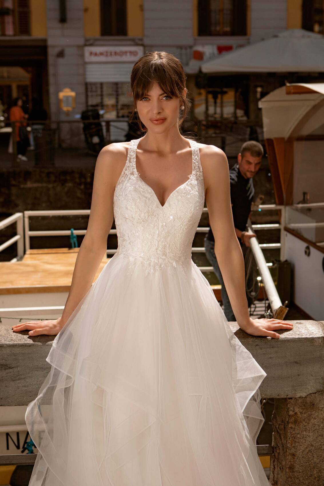 Pour les plus princesses d’entre vous magnifique robe en dentelle et volants de tulle.